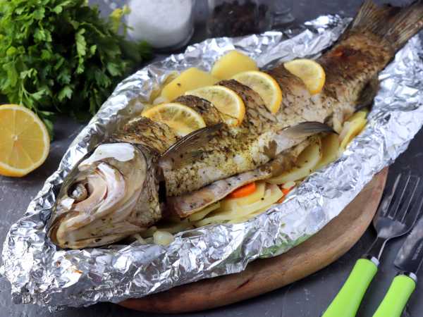 Чтобы рыба не пересохла, я наливаю в форму немного воды - буквально 2-3 столовых ложки.