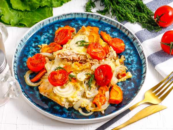 Поместите форму с цветной капустой и горбушей в духовку, нагретую до 200°С, и запекайте около 15 минут.