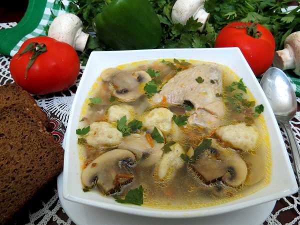 Шампиньоны очистите, помойте и нарежьте на две части.