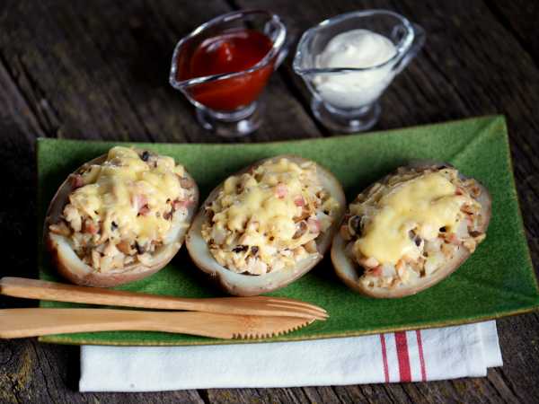 Соберите ингредиенты для приготовления картошки с крылышками и грибами в духовке.