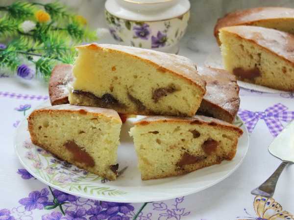 Готовый кудрявый пирог с вареньем чуть охладим и подаем к столу.