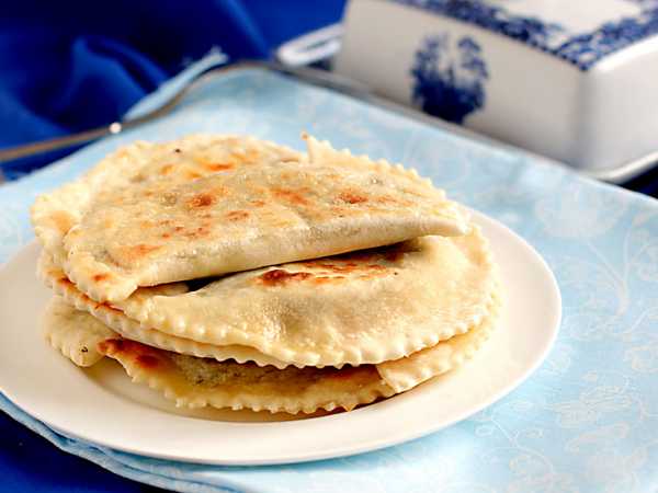 Нужно понимать, что кутабы готовятся на сухой сковороде, и чтобы тесто пропеклось со всех сторон, оно должно полностью контактировать с поверхностью сковороды, а это значит, что кутаб должен быть тонким и плоским, поэтому начинки кладём немного и очень тонким слоем. Если положить много начинки, пирожок станет выпуклым и пропечется лишь серединка, края "повиснут" в воздухе.