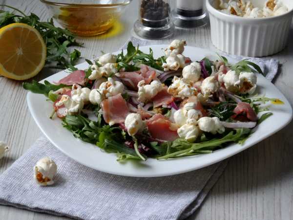 Сегодня вся зелень доступна в супермаркетах круглый год. Поэтому найти рукколу и шпинат не составит труда. Готовится салат очень быстро и собирать мы его будем сразу в салатнике, который, собственно, и будет подаваться к столу.