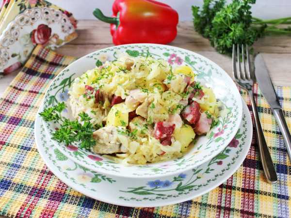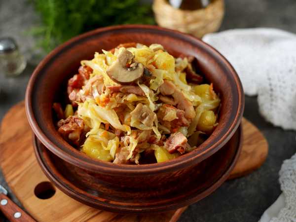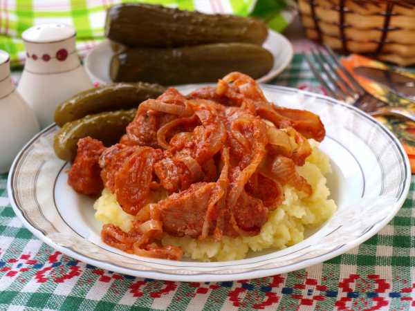 Тушеное мясо с капустой и яблоками по-армянски в зависимости от размера порции может быть самостоятельным полноценным блюдом или может быть дополнено каким-либо картофельным гарниром.