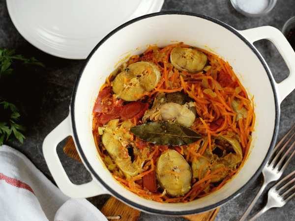 После чего необходимо дать блюду остыть и настояться. Поэтому переложите куски рыбы в контейнер и сверху залейте маринадом. Уберите в холодильник на 2-3 часа, чтобы рыба напиталась вкусами.