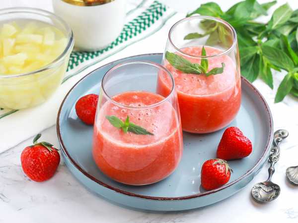 Перелейте кефирный смузи со шпинатом и клубникой в стакан или чашку и украсьте по вкусу. Дегустируйте с наслаждением.