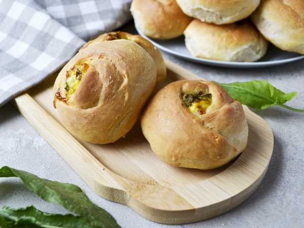 Дайте пирожкам постоять 20-25 минут и смажьте их взбитым яйцом.