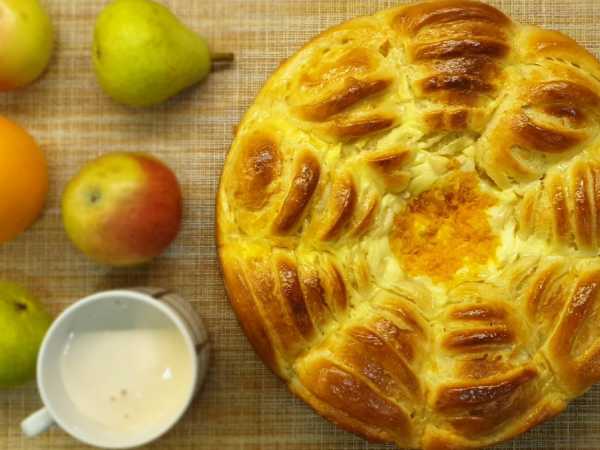 Из теста сформировать украшение и выложить поверх пирога и начинки.