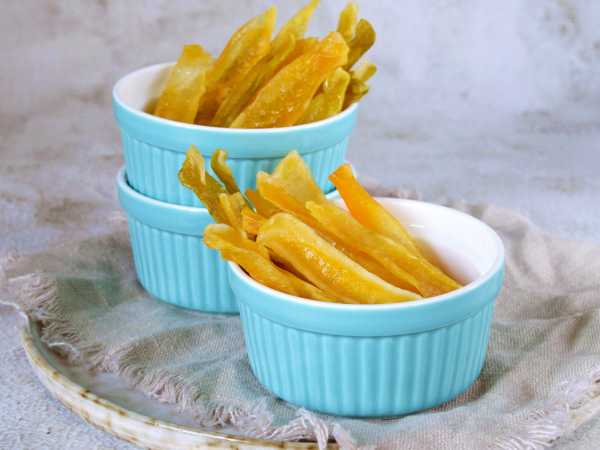 Аналогичным способом можно приготовить цукаты из апельсина и грейпфрута. Цукаты можно добавлять в выпечку, а можно подать в качестве десерта к чаю.