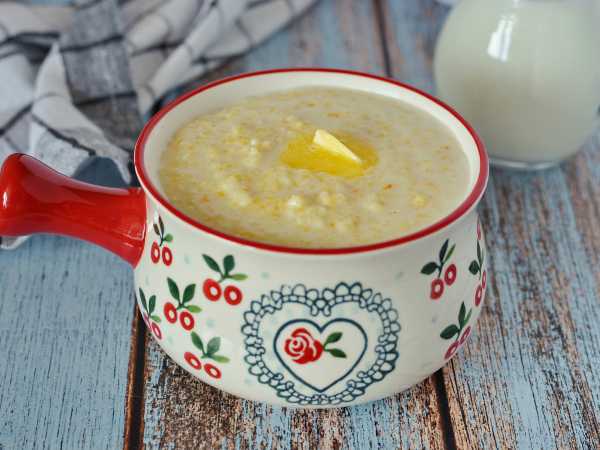 Для второго варианта манку из белой кукурузной крупы соедините с водой.