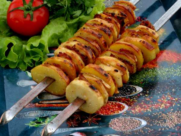Картошка с салом на мангале на решетке готова.
