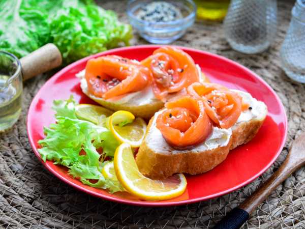 Приготовьте начинку: смешайте сливочный сыр, сметану, мелко нарезанный укроп, соль и черный молотый перец. Филе форели нарежьте тонкими ломтиками.