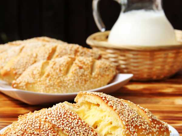 Смазать пирог взбитым желтком.