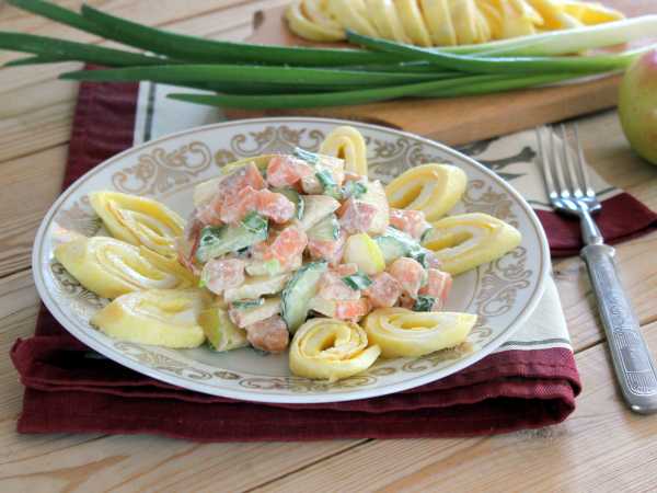 Яблоки для салата я использовала нового урожая, кожура у них тонкая и очень мягкая, поэтому не стала ее снимать.