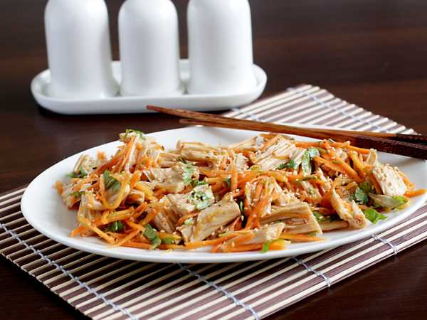 Очищенную морковь натрите на терке. Можно нашинковать ее с помощью комбайна мелкой соломкой.