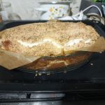 Поверхность пирога посыпьте оставленной ранее крошкой. Поставьте выпекать яблочный пирог с кремом суфле в разогретую до 180 градусов духовку примерно на 35-40 минут. Все равно ориентируйтесь по своей духовке, они все пекут по-разному. Нужно, чтобы во время выпечки суфле поднялось, поверхность пирога хорошо зарумянилась и на ней появилось несколько трещин.
