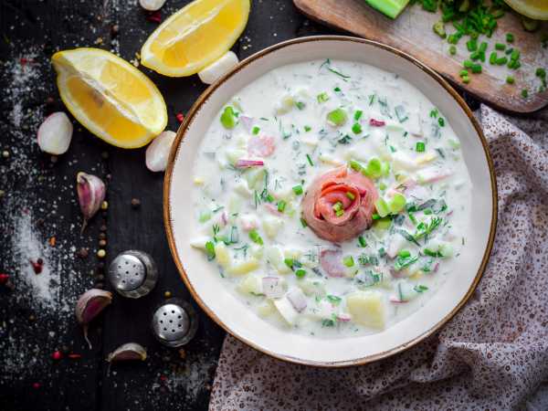 Этот вариант окрошки отличается невысокой калорийностью, поэтому отлично впишется в рацион приверженцев полезного питания и всех худеющих.