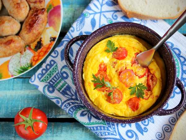 Омлет на воде в микроволновке готовится из простых ингредиентов.