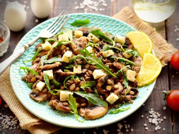 Спустя указанное время красная чечевица с грибами будет готова.