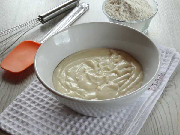 Тесто для пирогов на сковороде полностью готово! Вам остается лишь смазать сковороду маслом, влить в нее тесто и накрыть крышкой. Поместить сковороду на плиту, включив минимальный нагрев, и готовить пирог примерно 40 минут.