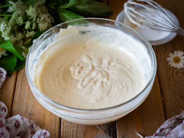 Влейте растительное масло без аромата, перемешайте и всыпьте пшеничную муку высшего сорта и разрыхлитель. Если разрыхлителя нет в наличии, то погасите 1 ч.л. соды уксусом. Аккуратно всё вмешайте, но не взбивайте, чтобы не образовались комочки. Если хотите добавить различные сладкие специи и пряности, то сделайте это после добавления муки.