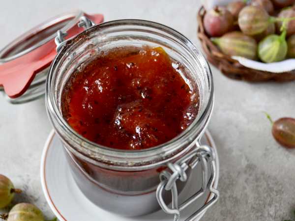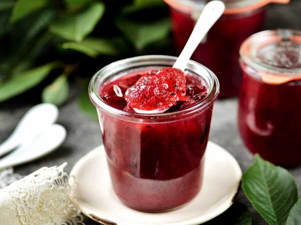 Баночки к этому времени должны быть промыты и простерилизованы, а крышки прокипячены в течение 5 минут. Горячий конфитюр перелейте в горячие баночки.