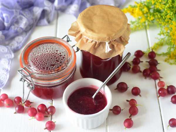 Уваривайте крыжовник 35-40 минут на тихом огне, снимайте пенку. Когда крыжовник будет готов, положите в кастрюлю набухший желатин и сразу же перемешайте, чтобы он полностью растворился. Конфитюр готов. Можно его разложить в банки.