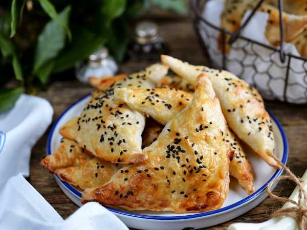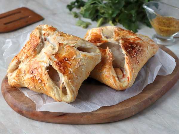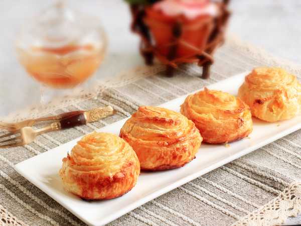Выпекайте слойки в духовке, разогретой до 190-200 градусов, 25-30 минут. Время выпекания зависит от вашей духовки.