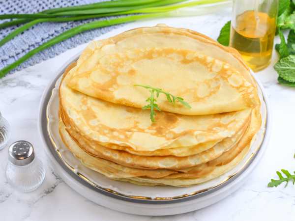 Блины «Пухляки» на сыворотке готовы. Подавайте в теплом виде со сметаной, медом, джемом.