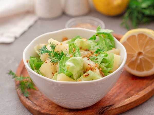 Полейте заправкой салат, при необходимости можете немного посолить, если соли вам всё же не хватает.