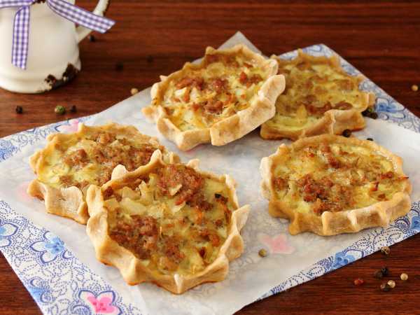 Раскатайте каждую в небольшую лепешку, толщиной около 3 мм. В центр каждой лепешки выложите начинку, оставив края свободными.