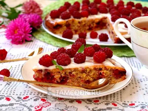 Продукты для приготовления пирога с малиной на сковороде - перед вами!