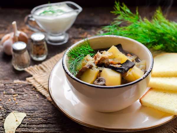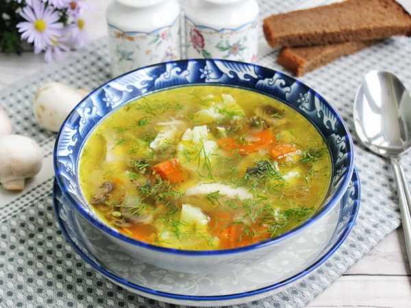 Проварите все вместе 2-3 минуты. В конце готовки можно добавить свежую зелень. Грибной суп с тушенкой готов!