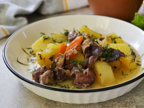 Духовки все разные и размер кусочков курицы - тоже. Поэтому ориентируйтесь на готовность по румяной корочке. А также признаком готовности курицы будет тест на отсутствие крови: то есть нужно кончиком ножа проткнуть самый толстый кусок, и если выделяется прозрачная жидкость без признаков крови, то курица готова. Ну а картошка, понятное дело, при прокалывании ножом должна стать мягкой.