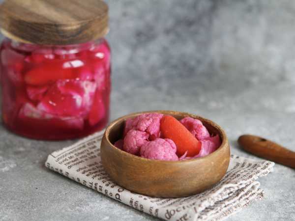 На 5 сутки квашеная капуста с имбирем у меня уже была готова. Я переложила ее в подходящий контейнер и убрала в холодильник еще на 2 дня для полной зрелости.