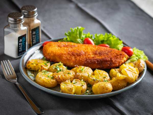 Ну, и вот раздавленная картошка в виде гарнира к шницелю.