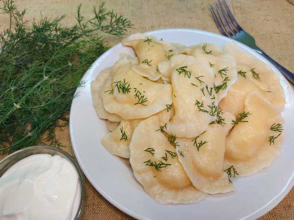 Можно раскатать круг диаметром примерно 40-50 см, толщиной не больше 3 мм. Кондитерским кольцом вырезать кружочки нужного вам диаметра. На каждый из них выложить картофельную начинку и закрепить края вареников.