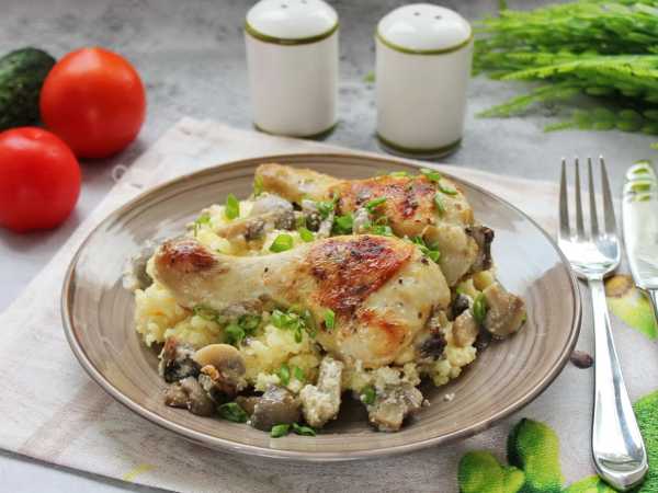 Запекайте курицу с грибами в рукаве в духовке примерно 40 минут при температуре 180-190°С. Пусть курица подрумянится.