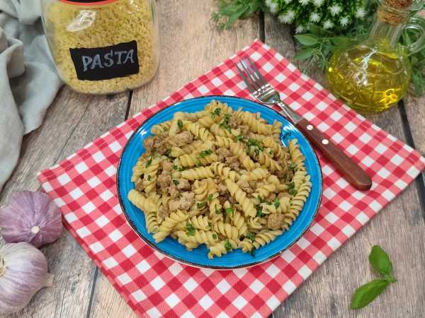 Доводим до кипения, убавляем огонь и варим пасту до готовности, еще примерно 15-17 минут. Не забываем помешивать, чтобы при испарении жидкости ни фарш, ни паста, не прилипли к сковороде. Пробуем на вкус, при необходимости добавляем соль и другие специи.