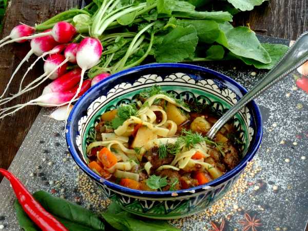 Если у вас нет казана или жаровни, то вы можете сварить суп в обычной кастрюле, предварительно поджарив лук с морковью на отдельной сковороде, а затем переложив их в кастрюлю.