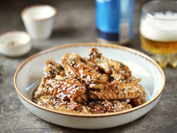 Тщательно смажьте их соусом и допекайте острые крылышки к пиву в духовке еще 10 минут.
