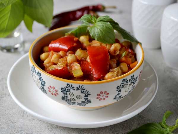 Затем добавьте отваренный нут без жидкости, лавровый лист и варите блюдо под крышкой 15 минут, до мягкости капусты.