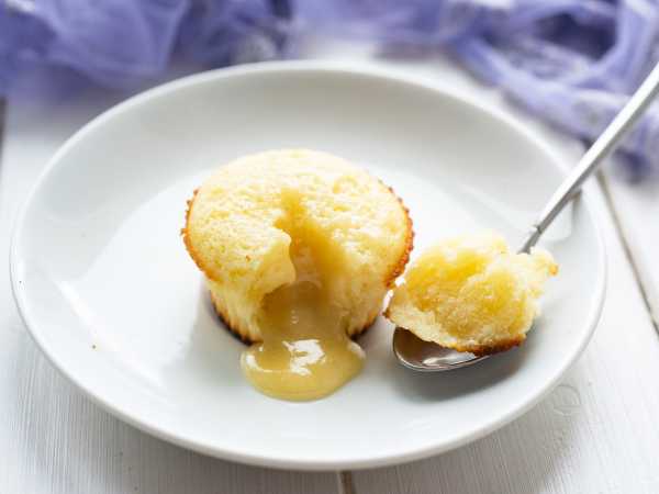 Достаньте готовый бисквит из духовки и дайте ему полностью остыть, перед тем как извлечь из формы. У бисквита срежьте верхушку и разрежьте бисквит на 2 равных коржа.