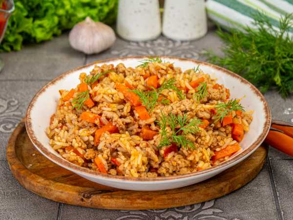 Рис с тушенкой и овощами готовим из таких ингредиентов.