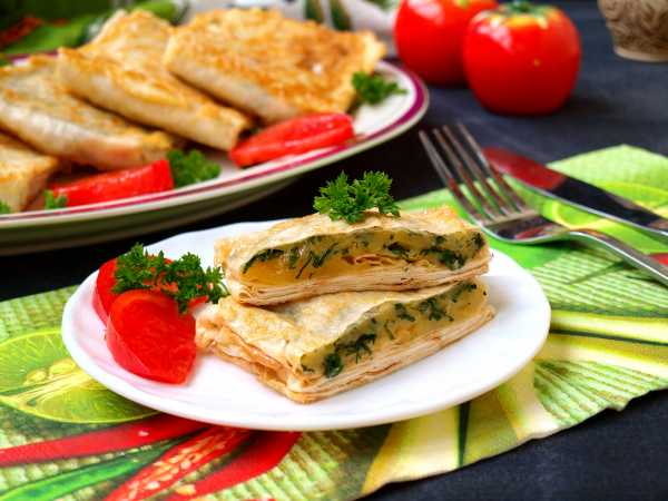 Лаваш с начинкой сверните в рулет и оставьте полежать несколько минут, чтобы он пропитался.