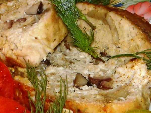 Индейка с грибами готова. После запекания оно оказалось во вкусной и ароматной подливе. Дополнить блюдо можно любым гарниром.