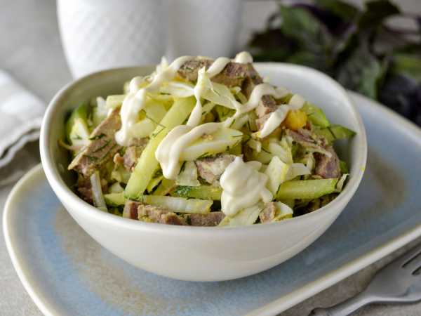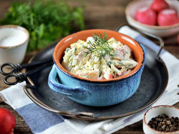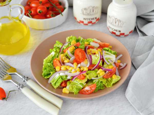 Переложите готовый салат «Свежесть» в подходящий салатник и подавайте к столу. Приятного аппетита!