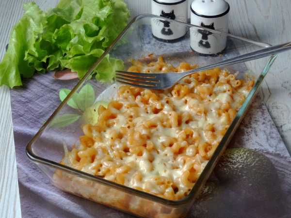 Запекать макароны под соусом бешамель в духовке при температуре 190 градусов до румяной корочки, можно под грилем 5-10 минут.