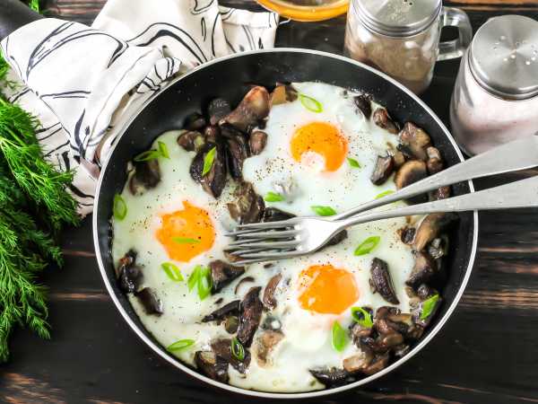 Яичница-глазунья с пореем готова, пора завтракать!