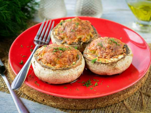 Запекайте фаршированные шампиньоны со сладким перцем 15-20 минут, до готовности. Духовку установите на 180°С. Грибы получаются сочными, вкусными и ароматными.